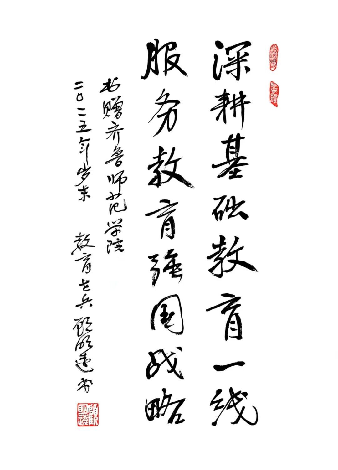 作为我国教育领域的泰斗级人物,96岁高龄的顾明远先生深耕教育领域七十余载,其开创的比较教育研究体系为我国教育改革提供了重要理论支撑,更培养了一代代教育领军人才。这份题字饱含对我校教育学学建设的高度认可,也让我院师生倍受鼓舞——作为学校教师教育的重要力量,我们将以此为指引,更加坚定地扎根齐鲁大地,深耕基础教育。