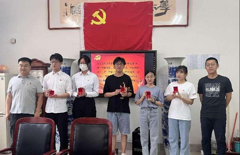 李炜琛、王亚东郑重地向毕业生党员们赠授了党徽。全体毕业生党员在《亮牌示范承诺书》上注重地签上了自己的名字,从品德修养、学业学风、社会活动、服务群众和组织纪律等五个方面向党组织和群众承诺,勇担新时代青年党员的神圣使命。