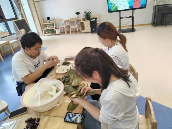 活动伊始,大家一起参与包粽子:折粽叶、填糯米、填内馅、系棉绳、封粽口,互帮互助、其乐融融。现场弥漫着粽叶的清香与糯米的香甜,处处充满着浓郁的端午气息。