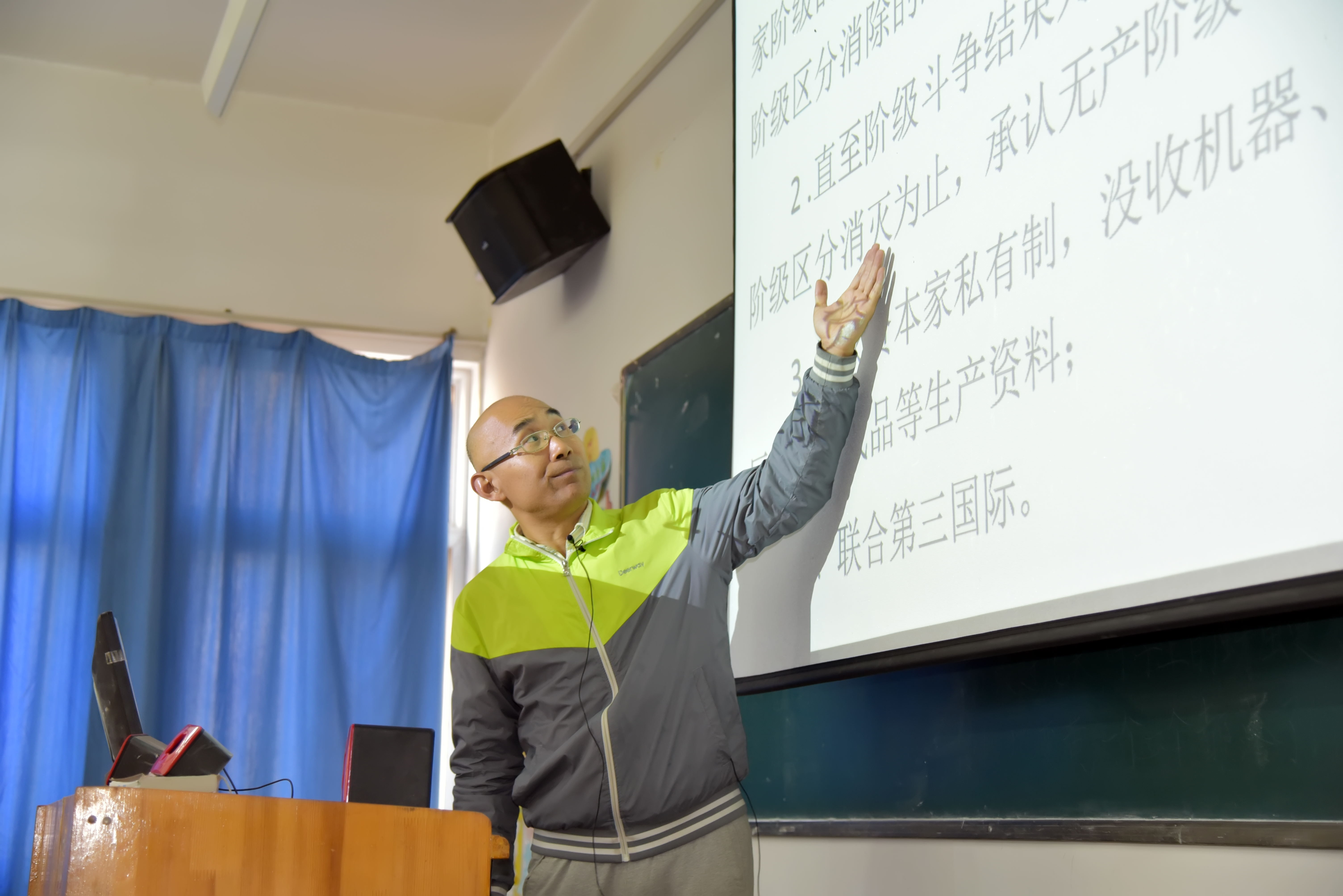 曾凡朝教授以习近平总书记在庆祝中国共产党成立95周年大会上的讲话为中心材料,从立足当下、回顾历程、展望前景三个阶段为大家做了详细讲解。首先,曾教授重点为大家讲述了“七一建党日”的由来:把7月1日作为中国共产党的诞辰纪念日,是毛泽东同志于1938年5月在《论持久战》一文中提出的,这是中央领导同志第一次明确提出“七一”是党的诞生纪念日。随后,曾教授强调了“五位一体”、“四个全面”等内容的重要性,并播放习近平总书记的七一讲话视频,以最直观的形式让大家深刻领悟讲话精神。最后,陈宝金书记做了总结讲话,强调当代大学生应有反思精神,应不断完善自我,积极投入到社会主义现代化建设事业中,为实现伟大复兴“中国梦”贡献力量。学生代表马阳带领大家诵读了习近平总书记讲话中引用的李大钊先生的“青年要为世界进文明,为人类造幸福,以青春之我,创建青春之家庭,青春之国家,青春之民族,青春之人类,青春之地球,青春之宇宙,资以乐其无涯之生”一段话,为讲座画上了圆满的句号。