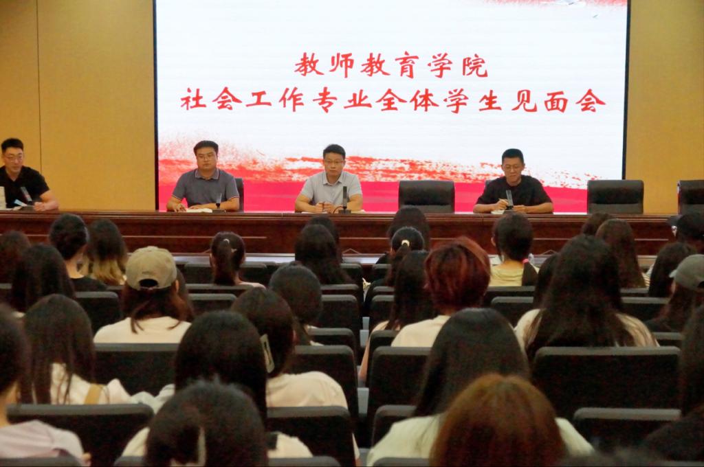 为更好地帮助转入YL23455永利集团的学生尽快适应学院调整、融入学院氛围、开启新的学习阶段,9月14日下午,YL23455永利集团分别在学院会议室和学校第二学术报告厅召开了社会工作专业学生干部座谈会和社会工作专业全体学生见面会。学院党委副书记栾毅之、团总支书记李炜琛、副书记王亚东、辅导员柴通参加会议。