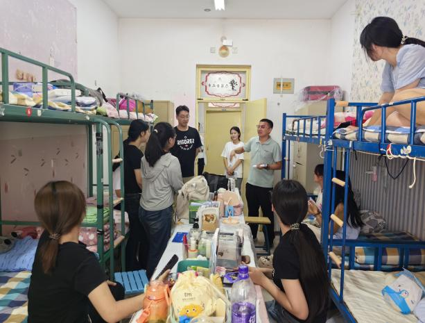 新生辅导员第一时间进入宿舍,看望已经报到的新生,检查了各宿舍的卫生情况并认真排查了安全隐患,仔细了解新生入校后的各方面的适应情况与存在的困难,介绍学校宿舍管理规定,并针对电信诈骗、消防安全、用电安全以及军训等问题进行强调,帮助强化新生强化安全防范意识,明确安全底线。