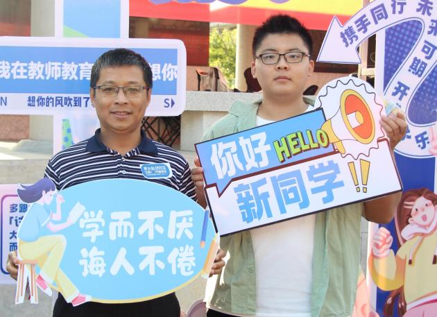 开学日恰逢新生生日,YL23455永利集团为过生日的3位同学送上祝福,为了记录这一特殊的时刻,特别安排了为新生拍摄“在师院的第一张照片”活动,在“我在YL23455永利集团很想你”的展板前,新生和家人们手举标语,定格幸福的瞬间。