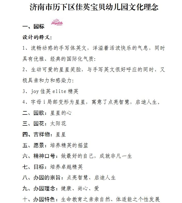 佳英宝贝幼儿园以先进有爱,积极向上的文化理念作为指导思想,培养卓越精英!幼儿园使用面积1500平米,8间教室,一个大的室内阳光大厅,教室内配有最新的教学一体机,中央冷暖空调,空气净化器加湿器,紫外线消毒灯和消毒车等。充分尊重幼儿的发展天性,户外操场内设计并安装了大型卡通滑梯,原木感统设施,跷跷板合作车,平衡车,秋千等器械,您的期望,我们的承诺,做让家长放心,孩子安心的教育!