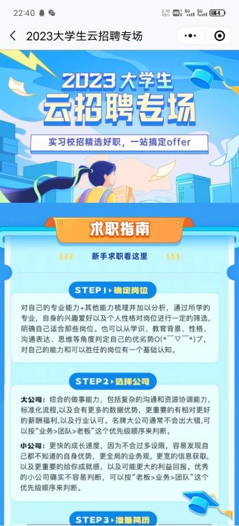 根据页面内的【求职指南】进行自主企业/岗位的选取