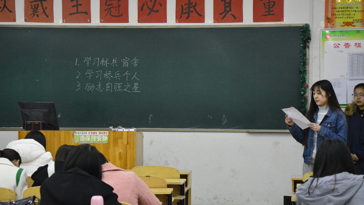 为深入贯彻党的十八大精神,激励广大青年学生自立自强、奋发成才,在青年学生中树立一批勤奋学习、不畏困难、勇于进取的先进典型,我院将于4月5日进行2015-2016学年度“学习标兵宿舍”、“学习标兵个人”、“励志自强之星”评选活动,我院学习部部长杨雁冰及副部长马晓燕、任晓红在3月28日晚到各个班级进行了宣传。