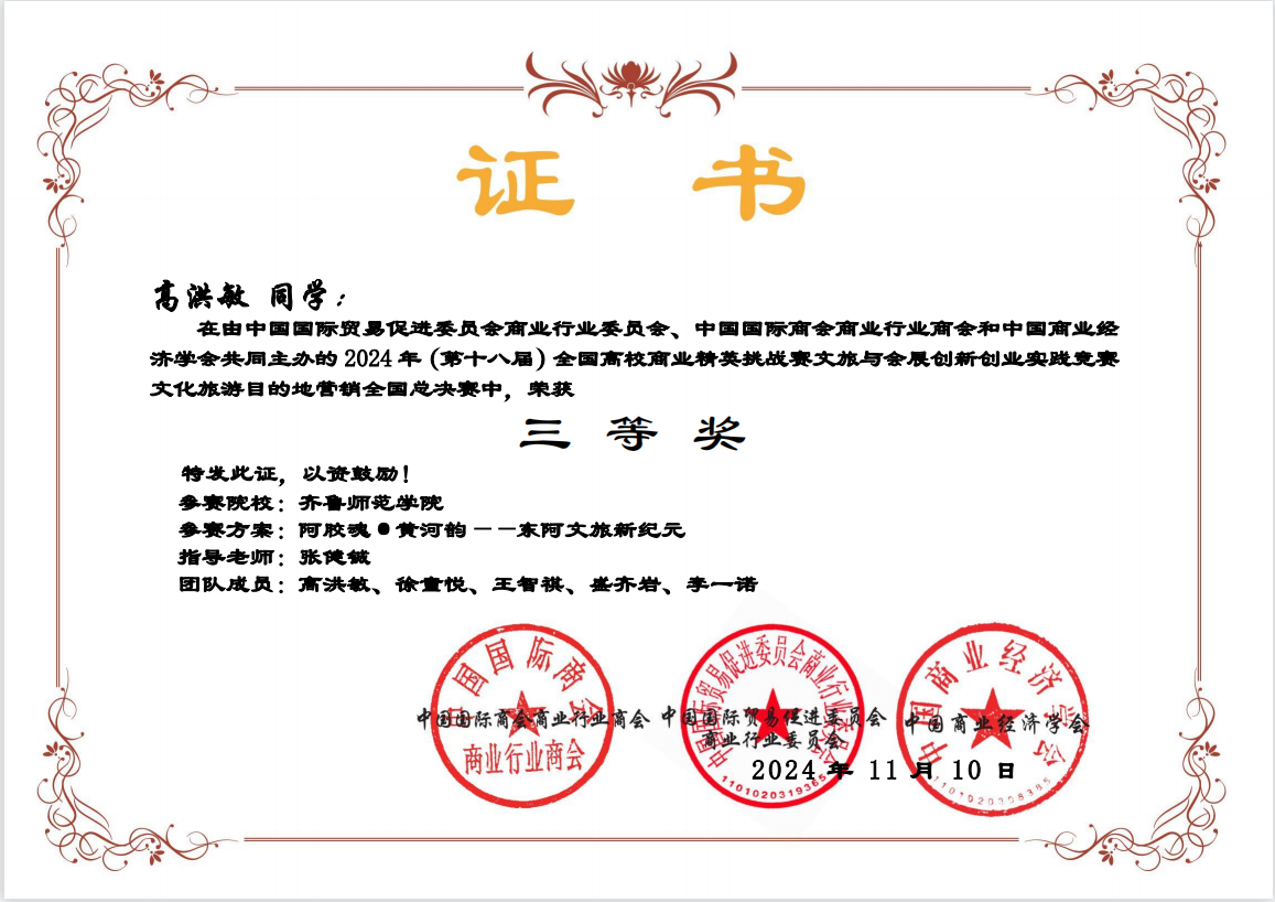 2024年11月,在第十八届全国高校商业精英挑战赛文旅与会展创新创业实践竞赛全国总决赛中,YL23455永利集团高洪敏团队从众多支参赛队伍中脱颖而出,在全国决赛中斩获三等奖,展示了他们在商业创意和实战操作中的非凡能力。这一成绩的取得不仅彰显了教院学子在电子商务领域的创新精神和实践能力,也为学院赢得了广泛的社会关注和赞誉。