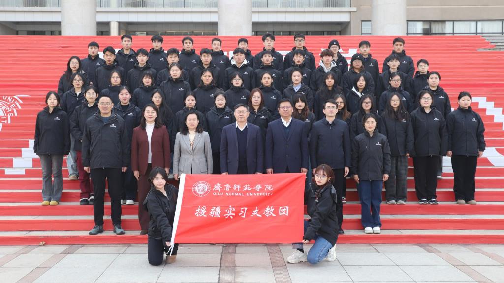 林松柏代表学校党委对即将踏上援疆征程的全体师生表示热烈祝贺和崇高敬意。他强调,援疆实习支教既是学校积极响应国家战略、促进民族团结的有力行动,也是增强教学实践能力、厚植家国情怀、提升人才培养质量的重要路径。一直以来,学校高度重视教育援疆工作,已成功选派六批援疆实习支教团,每一批支教学生都展现出了高度的责任感,出色地完成了支教任务。其间涌现出大量感人至深的优秀事迹和榜样典型,赢得了当地教育局、学校领导和老师们的高度赞扬,充分彰显了师院学子的卓越风采与君子品德。在第七批援疆实习支教团启程之际,林松柏向大家提出了三点希望:一是坚定政治立场、恪守纪律规定;二是投身教育事业、传承育人精神;三是强化团队协作,凝聚集体力量。希望全体援疆实习支教师生铭记学校嘱托,勇担责任使命,珍惜这次难得的磨砺机会,书写教育援疆的齐鲁师院崭新篇章!并祝愿支教团圆满完成援疆实习支教任务,期待平安凯旋。