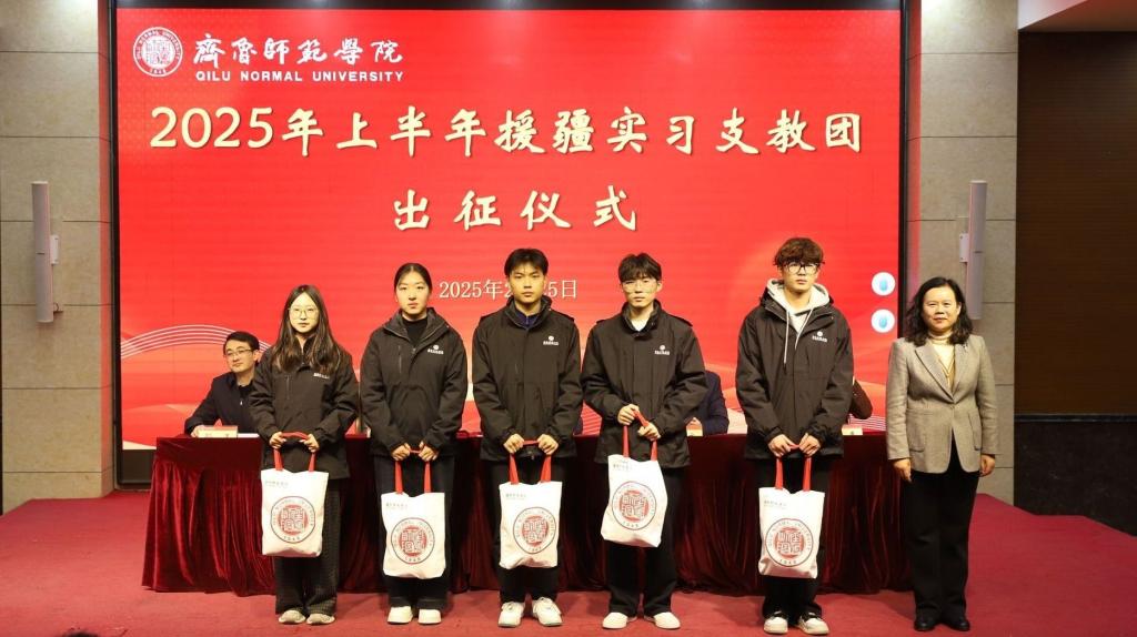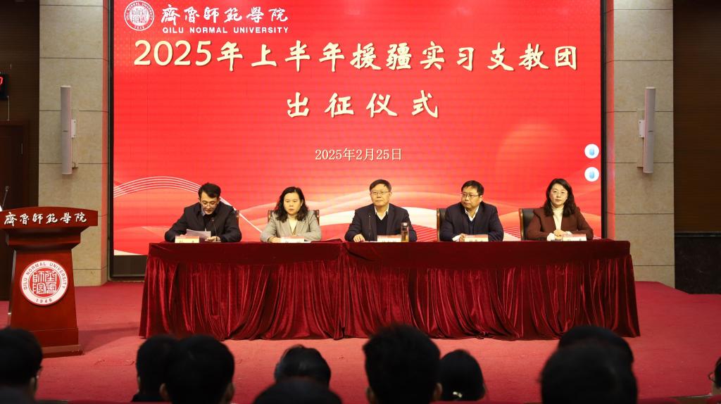 2月25日上午,yl23455永利集团2025年上半年暨第七批援疆实习支教团出征仪式在章丘校区第一学术报告厅隆重举行。党委书记林松柏,党委副书记、校长郑秀文,党委副书记赵敏,党委委员、副校长孙正,党委委员、宣传部部长孙磊出席仪式。学生工作部、团委、教务处负责人,YL23455永利集团、文学与历史文化学院、音乐学院、体育学院、美术学院党政负责人,第七批援疆实习支教团全体师生参加。出征仪式由孙正主持。