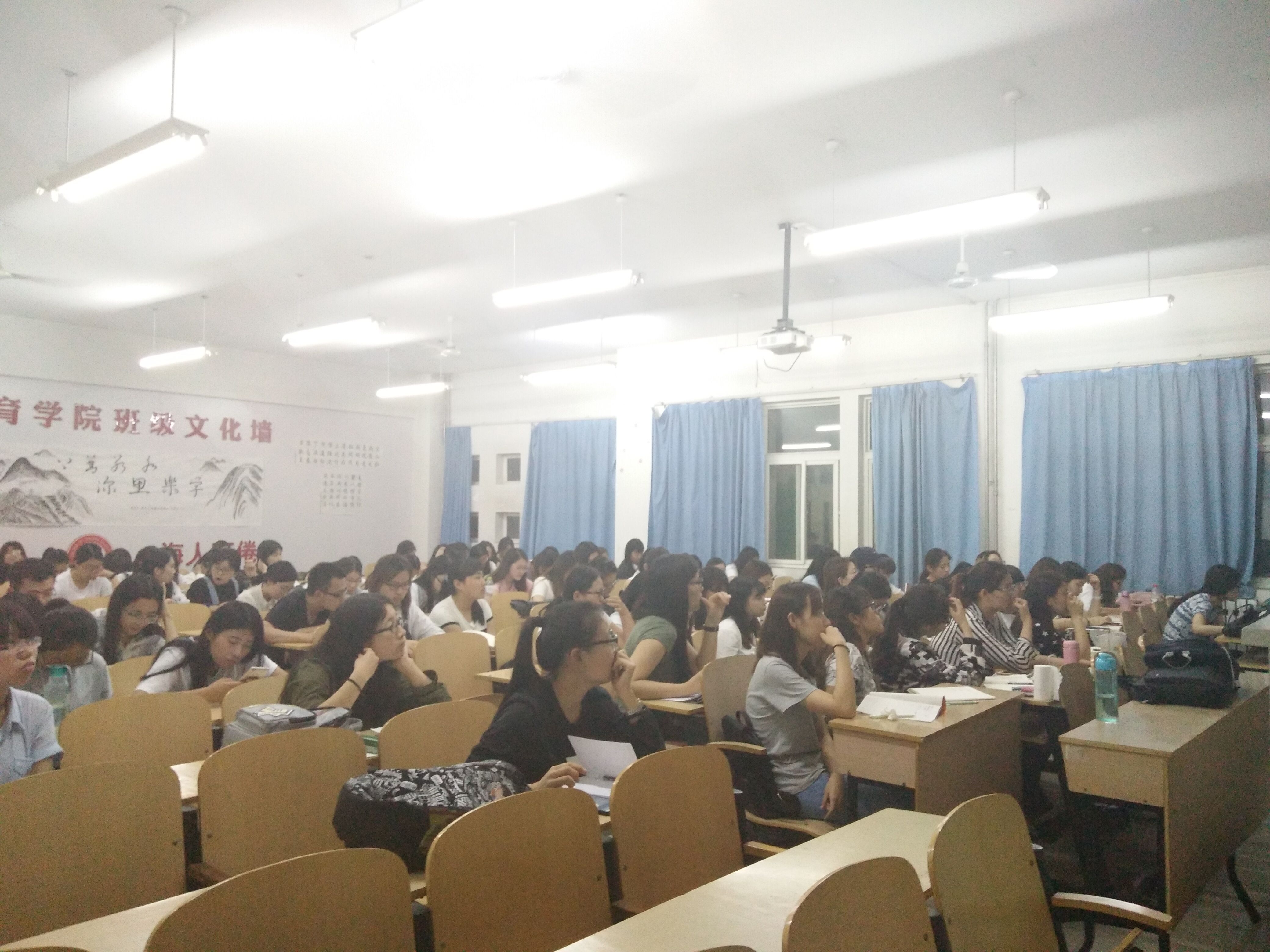 对于本次讲座,魏老师做了充足准备,对于一些学术性的问题进行深入剖析讲解,并举例论证。当提及考研问题,老师表达了自己的看法,强调心理学学习的重点以及重要性。除了要自我提高紧迫的意识外,还要提高能力,丰富专业知识。指导毕业生论文应注意的问题,需侧重的点,在这短短一个小时的讲座过程中,魏老师情绪饱满,用诙谐幽默的语言,“手舞足蹈”的动作给我们在场的每一位同学上了一堂精彩的心理讲座。在场同学们都聚精会神,同时不少人还拿着笔记本认真记下了精彩要点,场下并不时的响起同学欢快的笑声。