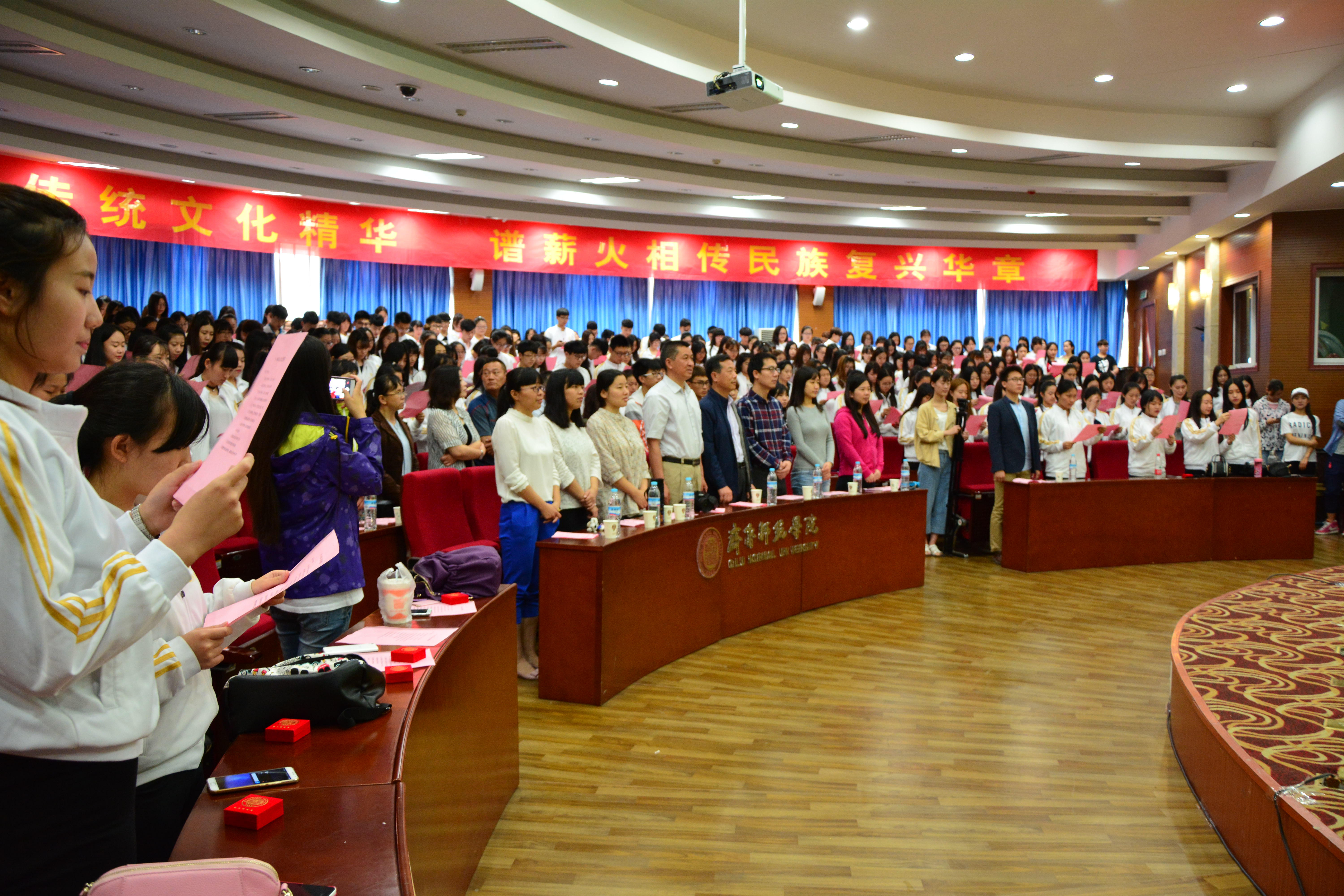 5月28日上午,一片青春的热浪翻滚在我校章丘校区图书馆学术报告厅里。由我院举办的“青春·感恩·责任”主题成人典礼在这里进行,400多名今年满18周岁的同学与学院领导、老师和部分家长一起见证了人生这一重要时刻。学院院长赵延银出席并致词,党总支书记陈宝金,办公室主任练强、全体辅导员老师及部分学生家长参加了成人礼仪式。