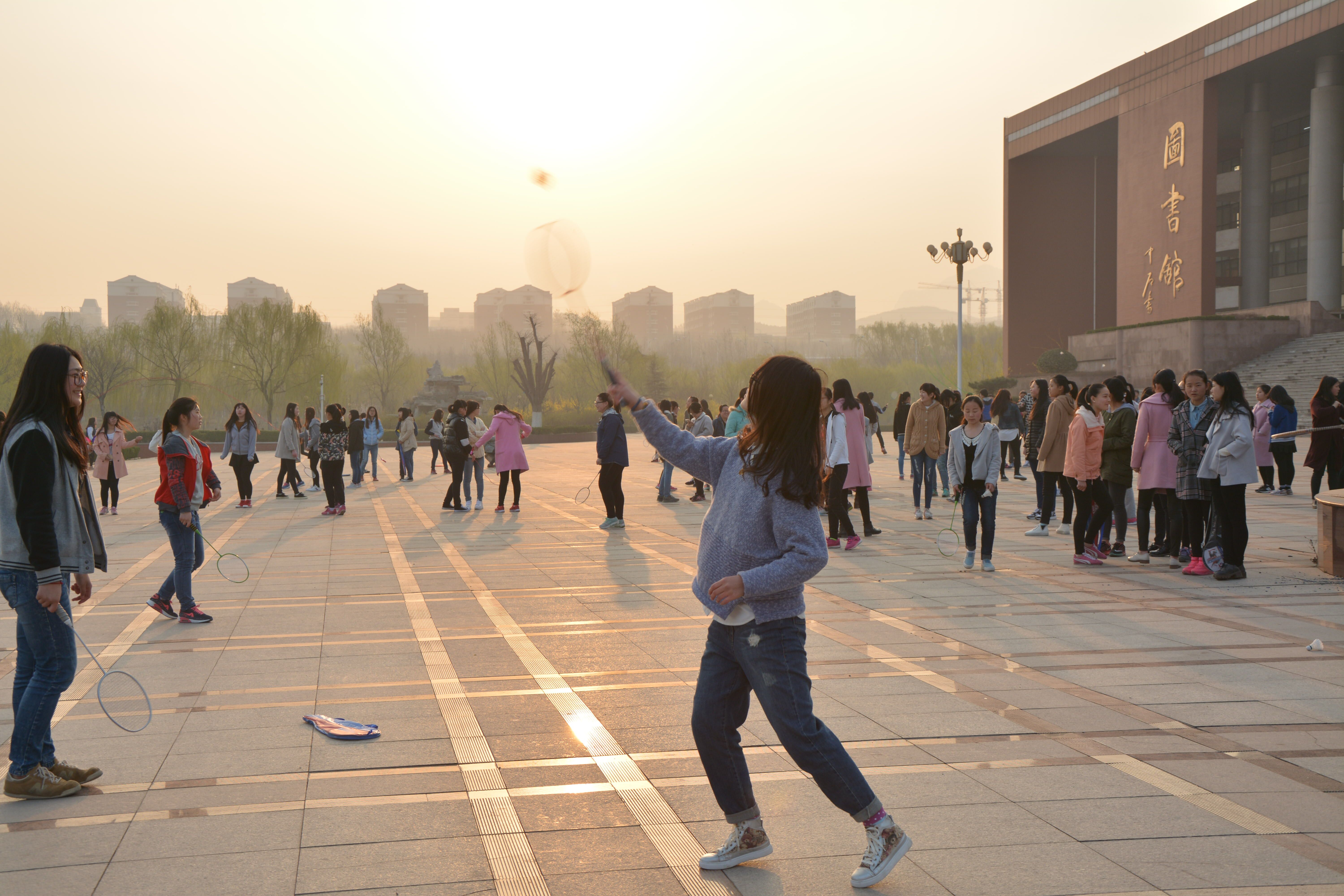 早操开始前,各班整队迅速、队列整齐,以积极的心态参与到特色趣味早操的活动中去。早操开始后,飞舞的羽毛球、转动的呼啦圈、用力甩动的拍子等等,.整个图书馆门前广场俨然变成了运动欢乐的海洋,一片欢声笑语,满是青春活力。