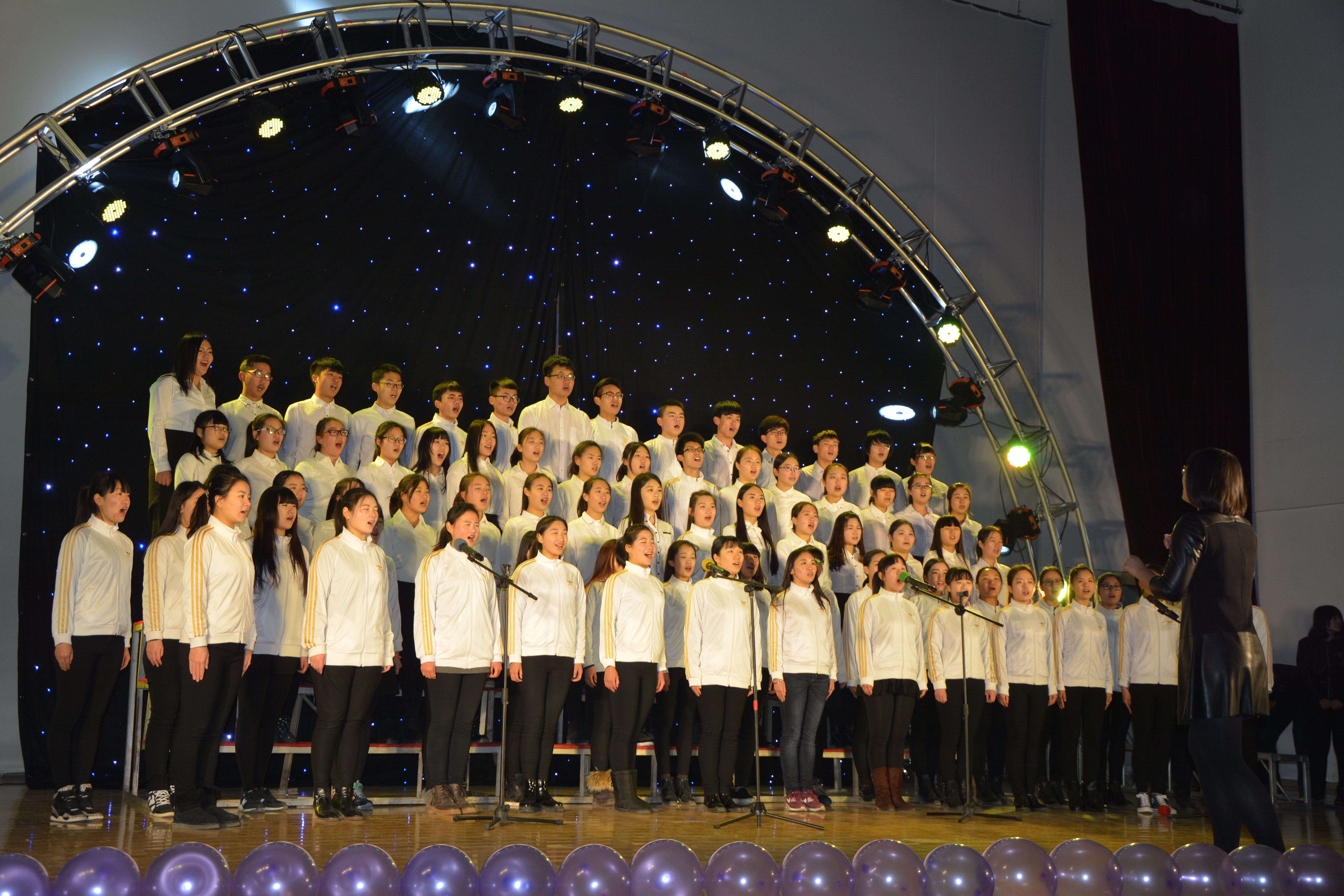 晚会由活力四射的集体舞开场,瞬间就燃起了现场的热闹气氛。紧接着学院党员代表们合唱《国际歌》,在毛泽东主席诞辰122周年的特殊日子里,深情缅怀老一辈无产阶级革命家的丰功伟业,弘扬老一辈革命家崇高的革命气节;紧接着于惠老师带领学生们共同为我们表演的舞蹈《风中的百合》,轻盈的舞姿仿佛在凄切地诉说着革命烈士的英勇不屈,那举起的军帽是在赞颂军人们的军魂与气魄。晚会节目形式多种多样,记者团带来的节目《教院身边事》用朗朗上口的三句半说了说师院的趣事,文脉心理学社也力求创新,表演的哑剧《自习风波》所表现的“文明自习”的主题引发了许多同学们的共鸣。孟令昆老师一曲《You raise me up》更是将晚会的气氛推上了高潮,爱心社的手语表演《仰望星空》为整场晚会增添了温馨与感动,欢乐喜庆的大合唱《相亲相爱》让晚会圆满地落下了帷幕。