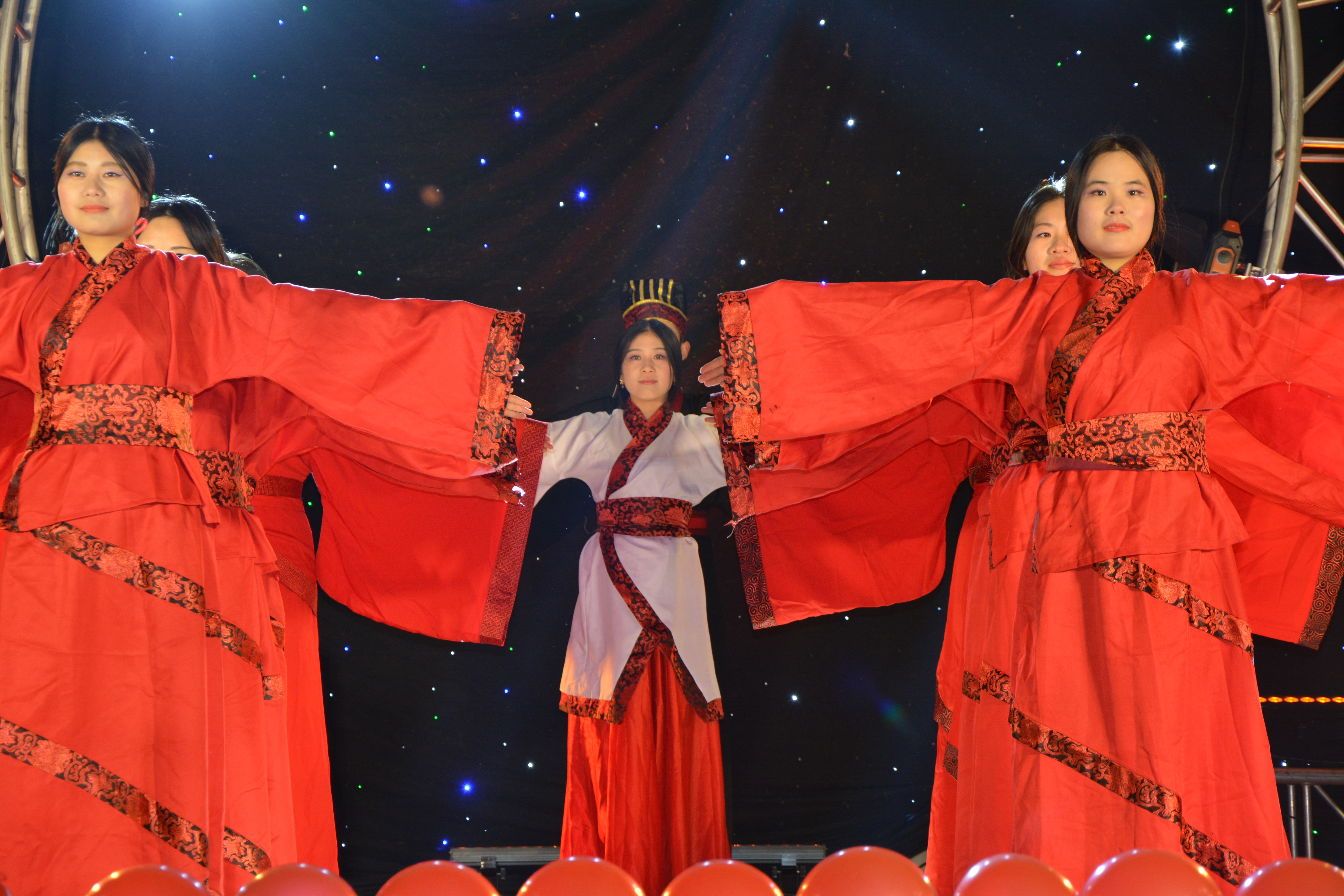 舞台上,参加展示的同学身着汉服唐装,效仿先贤,秉承古礼,吟唱诗词歌赋,颇具雅士风范。