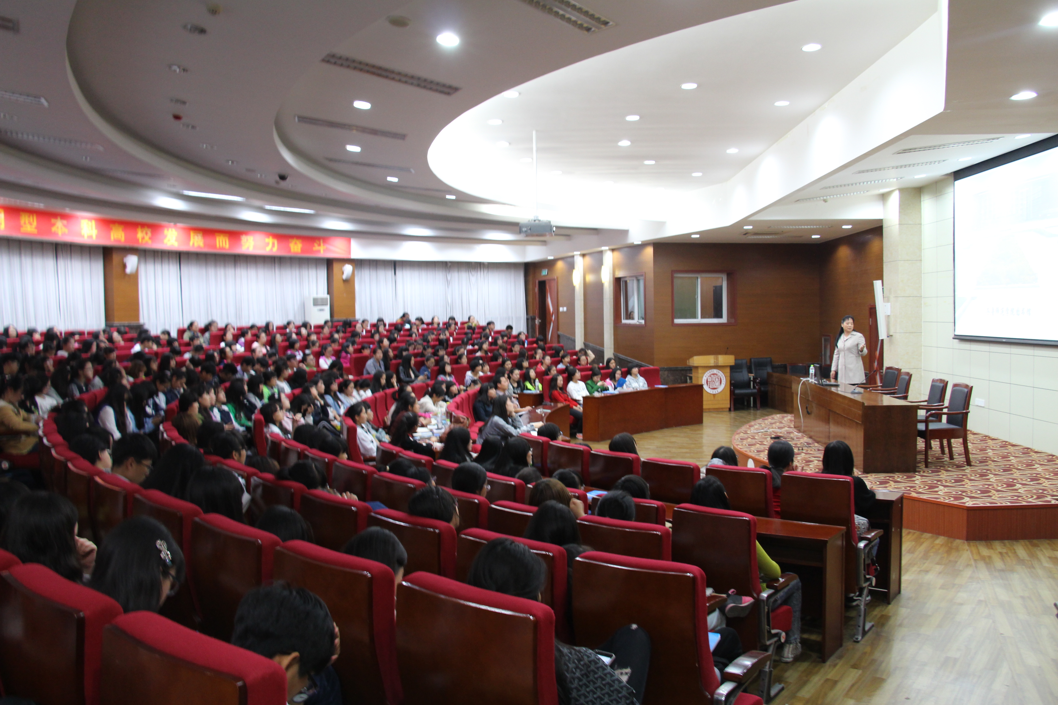 刘主任以龙应台先生关于教育的一段话为开端,指出图书馆在大学生学生生活中的作用和重要性。接下来,刘主任以图书馆的实地空间为主线,介绍了学校图书馆的结构和整体布局,并向同学们详细介绍了图书馆的发展历程、图书馆的机构设置、图书馆馆藏分布、图书馆的资源和服务、图书馆的规章制度以及读者网上服务项目等内容及图书馆的功能。刘主任着重介绍了图书馆的资源以及使用方法,尤其是电子资源,指出如中科考试等电子资源资源将会给广大同学的学习提供很大的便利和帮助。同时,刘主任还向对同学们推荐了与大学生学习密切相关的网络资源及使用办法,并祝愿同学们都能够学有所成,实现理想。报告会在热烈的掌声画上圆满的句号!