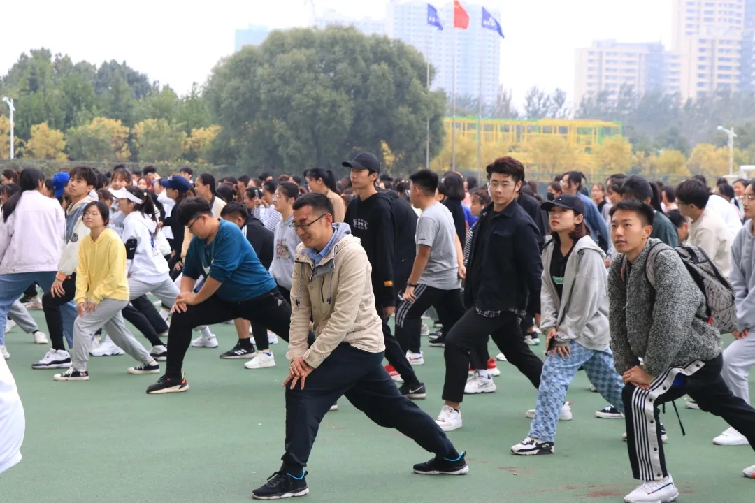 学院团总支副书记李炜琛,辅导员教师为学生提供热身指导,并与同学一同奔跑,感受运动之美。