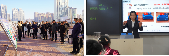 在崇文中学。12月22日,视导专家组通过查看校园环境、观摩课堂教学、开展教学研讨、组织师生座谈等形式,充分了解了学校新课程实施工作现状。专家对学校发展历程、“高阶思维课堂模式”、教学改革模式等方面的工作给予肯定;对学生特色作业语文“五个一”、英语“六个一”成果展示及丰富多彩的社团活动进行了深入了解。学校青年教师呈现了一场场精彩纷呈、各具特色的课堂盛宴,赢得了专家组及教联体各成员校领导和老师的一致好评。联盟校专家与教师代表、学生代表对话,就新课程理念下教学方式的突破等问题进行了深入的探讨。各位专家为学校下步发展精准把脉,建言献策,学校之间通过交流工作,碰撞灵感,互相学习先进经验。23日,在齐鲁师范协同创新项目“视导活动专家送教”报告会上,山东省青岛第三十九中学(中国海洋大学附属中学)校长白刚勋作了《新课程背景下项目式教学的组织和实施》的报告,北京师范大学博士、山东师范大学教授曾继耘作了《走向深度学习的教学变革》的报告,与会教师纷纷表示收获丰硕。