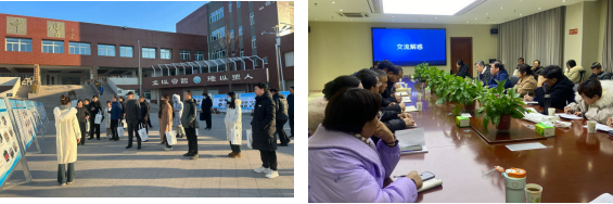 在冠县实验中学。12月22日,专家组及联盟校校领导参观了展板、思源餐厅、实验室和社团活动,全方位了解了实验中学的办学理念和社会环境;参加了9个学科“六位一体和美课堂”的观评课展示活动。通过深入课堂,近距离、多维度观察师生的课堂表现,了解教学效果,各位专家对“六位一体,和美课堂”模式进行了反馈与指导,肯定了教师在教学中呈现出的亮点并提出了指导性意见,并针对实验中学目前存在的困惑与不足,为学校接下来的教学工作指明了发展方向。通过听取学校工作汇报,与教师代表座谈,视导专家为学校下一步发展精准把脉,联盟学校之间通过交流工作,互相学习先进经验。