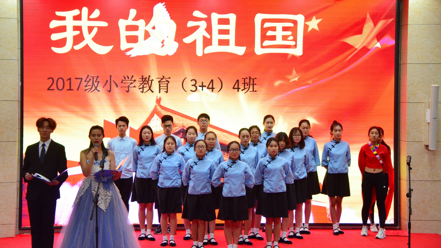 各参赛班级情绪或浓烈高昂或浓重深沉,语言或铿锵有力或柔情似水,并配以多样形式的才艺展示,歌颂出对党和祖国的崇高敬意和真挚的赞美,对父母浓浓的感恩之情。在十九大关于祖国美好蓝图的感召下,体现出青年学子抱定决心跟党走,坚定步伐赴国梦的爱党爱国情怀。