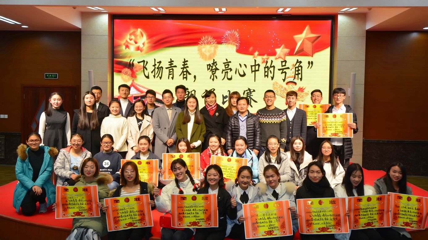 本次朗诵大赛,它不仅丰富了同学们的课余文化生活,更是一次深刻的思想政治教育课堂,进一步凝聚了青年学生的向心力,激发了青年学生的爱国热情和奋斗激情,增强了青年学生们的集体使命感和责任感。中国梦是历史的,是现实的,也是未来的,中华民族伟大复兴的中国梦必将在一代代青年的传递中实现。相信在十九大精神的指引下,青年学子定会志存高远,坚定信念,脚踏实地,勇于做时代的弄潮儿,在实现中国梦的生动实践中,放飞青春梦想,在对人民利益的不懈奋斗中书写人生华章。