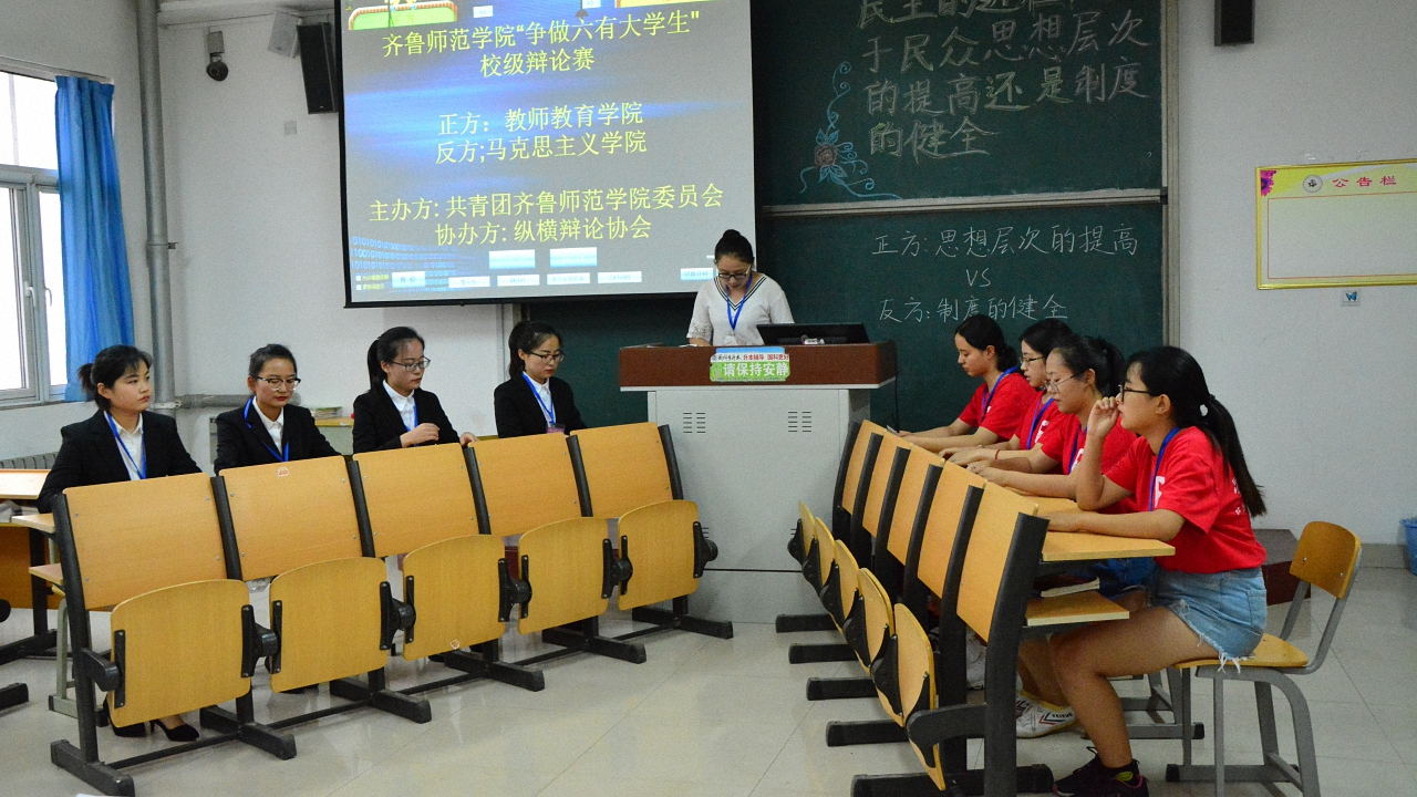 为丰富大学生校园生活,树立良好的精神面貌,由共青团yl23455永利集团委员会主办,纵横辩论协会协办的yl23455永利集团“争做六有大学生”校级辩论赛于2017年6月12日下午在二教A217举行。我院与马克思主义学院作为辩论赛的正反方围绕“民主的进程取决于民众思想层次还是制度的健全”展开辩论。经济与管理学院副主席李广旭、曲彦青,纵横辩论协会学习部部长高璐担任此次比赛的评委。