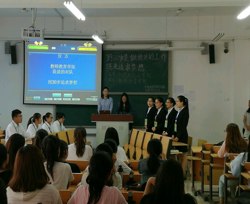 本场比赛化学与化工学院的正方“红鲤鱼与绿鲤鱼”队与反方我院的“我说的都对”队就“到三十岁是做稳定的工作还是追求梦想?”这一辩题展开了激烈辩论,唇枪舌战。在自由辩论阶段,双方辩手层层深入,提出了一个又一个尖锐的问题,将辩论赛推向了高潮,让大家享受了一场完美的听觉盛宴,在此过程中,我院二辩思路清晰言辞犀利。