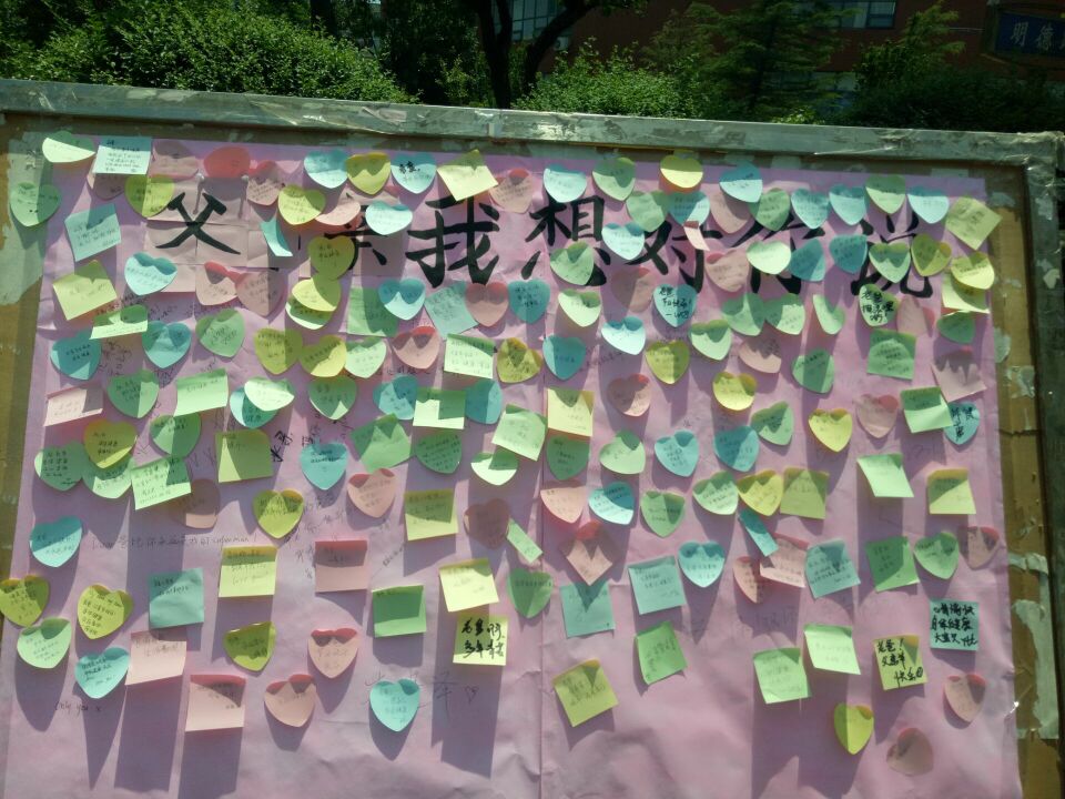 2016年6月17日,在父亲节即将到来之际,YL23455永利集团曦泉文学社举办以“父亲,我想对你说”父亲节主题活动。活动包括想对父亲说的话和主题征文两部分。同学们纷纷在便利贴上写下对父亲的祝福,并在感恩父亲的条幅上签字,将感恩时刻记在心中。更有不少的同学将自己和父亲的故事写成文章,踊跃投稿。活动期间,大家热情高涨,气氛活跃。那些色彩斑斓的便利贴,那些简单却又真诚的祝福,如一条小溪潺潺流过每一个人的心房,送去清凉和感动。征文经过审阅后将会把获奖结果公示于教学楼及一餐路口海报,同时会在微博平台上推送。