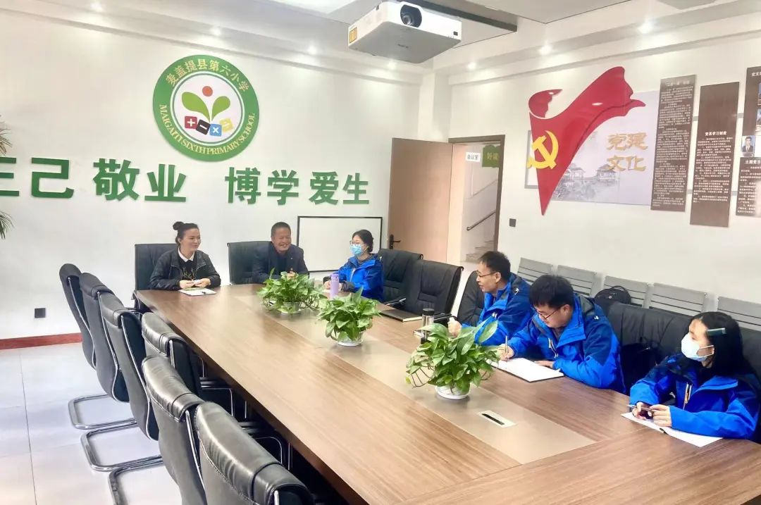 3月24日,yl23455永利集团支教团带队教师王建国、王亚东老师来到麦盖提县第六小学进行座谈调研。