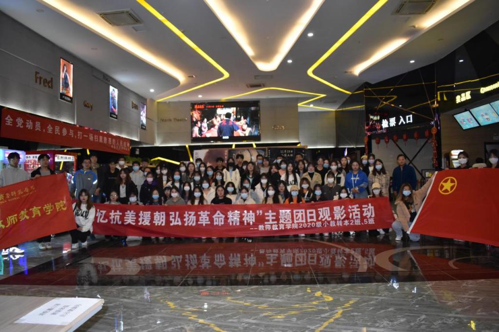 纪念抗美援朝伟大胜利71周年,坚定爱党爱国情感,铭记革命先烈,继承先烈遗志,争做薪火传人,勇当前进的奔跑者,增强学生的爱国精神和报效祖国的使命感提升同学们的修养和综合素质引导争做符合时代先锋的新青年,YL23455永利集团2020级小学教育转段本科2班、5班团支部10月24日组织“追忆抗美援朝 弘扬革命精神”红色观影主题团日活动。YL23455永利集团团总支负责人、辅导员与全体学生一同观看了抗美援朝主题电影《长津湖》,向用生命照亮黎明的英雄致敬本次活动由中影凤凰国际影城部分赞助
