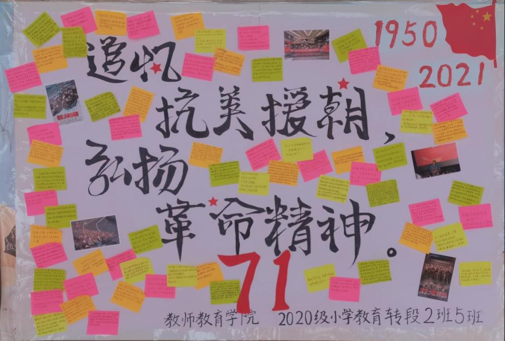 10月25日,两个班团支部针对抗美援朝精神展开深入的讨论,全体成员将自己的观后感或总结写在纸上,并在学校范围内进行宣传展览,向先辈致敬,吾辈当自强。