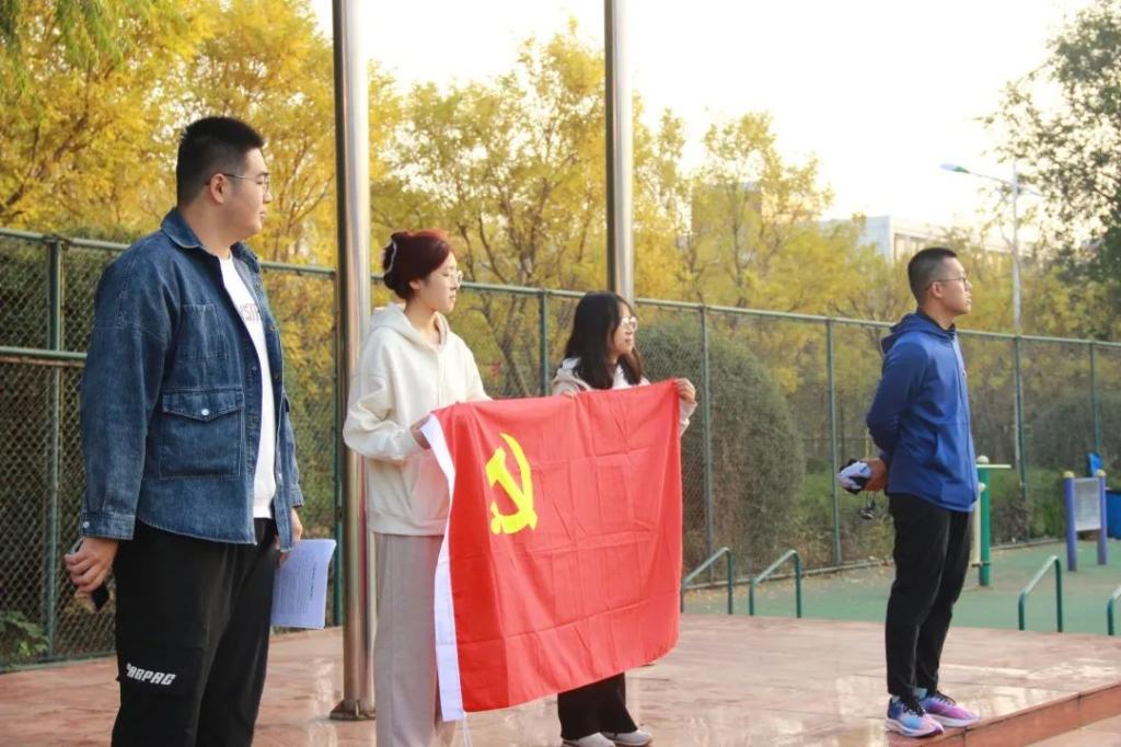 YL23455永利集团党委积极创新学习方式、不断丰富学习内容,“走出去”将主题党日活动扩展到革命遗址、历史展馆和红色教育基地等地,让理论学习与实践实景学习充分结合,使师生党员在身临其境中坚定理想信念,牢记初心使命。10月16日清晨,学院教师、学生党支部在章丘校区体育场参加了学校国旗护卫队升旗仪式,并在国旗下开展了“凝聚奋进力量、激励担当作为”主题党日活动。学生第一党支部书记李炜琛、辅导员马芳兵、高航与师生党员等80余人参加了本次活动。