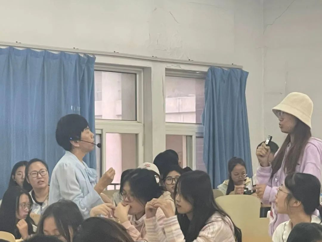最后是现场提问答疑。 滕秀芹教授结合自身经验,通过深入浅出的方式对同学们提出的针对性问题进行了全方位的答疑解惑,并建议同学们将学习与实践相结合,树立正确职业观,以乐观的心态迎接即将到来的实习生活。