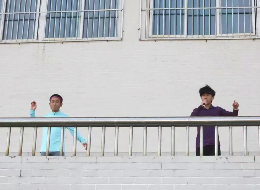 济南市优秀班主任、马拉松运动爱好者高飞老师和我院耿浩男同学带领全体参赛选手进行赛前热身,拉伸筋骨,做好赛前准备,避免运动受伤。