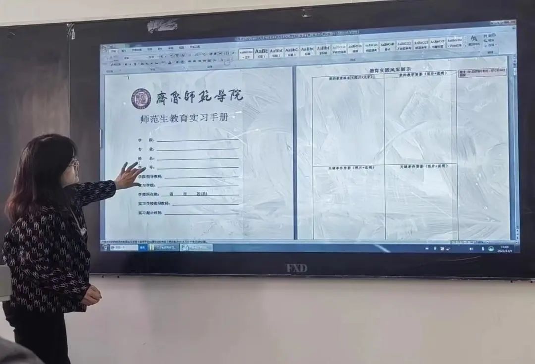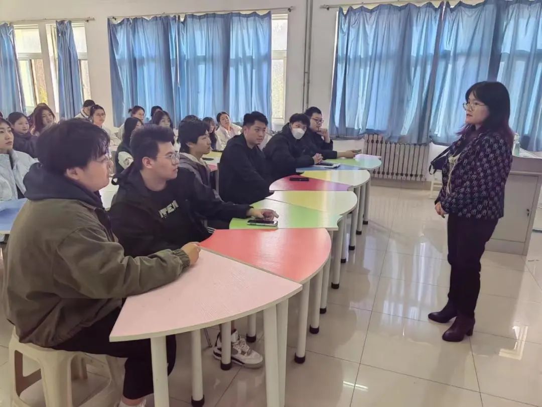 首先,刘桂荣就见习、实习、研习的总体安排进行了介绍。接着刘老师为学生介绍了实习流程包括实习时间、实习基地等,并且为学生展示了包括实习报告、实习鉴定表等在内的实习材料,为学生介绍了实习期间需要做的工作,让学生充分了解实习流程,同时也提醒学生注意配合实习学校工作,遵守实习纪律,时刻规范要求自己。最后刘老师解答大家的实习困惑问题,解答了大家关心的实习形式(集中实习、自主实习、支教实习)、住宿、吃饭、指导老师等相关问题。