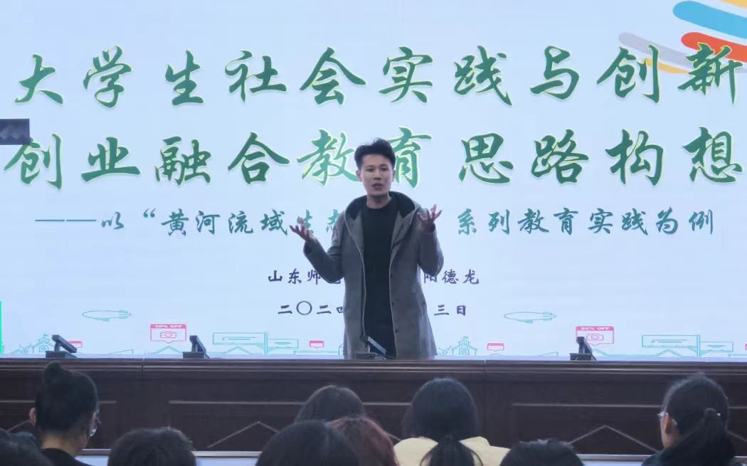 为深入推进教育教学改革与人才培养的深度融通,促进大学生社会实践与创新创业能力的有机融合,进一步激发大学生的创新精神和实践水平,强化学院第二课堂模块化建设,YL23455永利集团于12月2日邀请了“母亲河奖--绿色卫士奖”获得者、山东师范大学地理与环境学院辅导员欧阳德龙为同学们开展了题为《大学生社会实践与创新创业融合教育思路构想——以“黄河流域生态保护”系列教育实践为例》的讲座。讲座由辅导员袭著高主持,团总支书记李炜琛参加本次讲座。