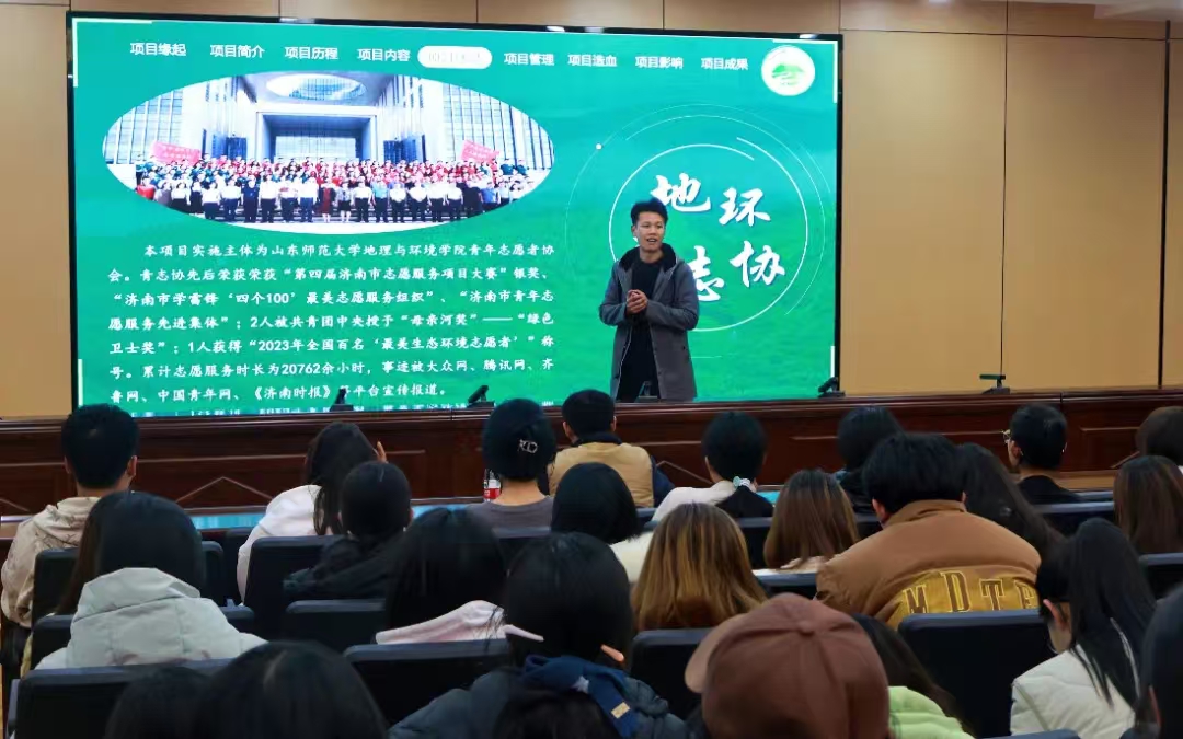 随后欧阳德龙以“黄河流域生态保护”为主线,通过聚焦守护黄河生态志愿服务项目,巨细靡遗地分享实践项目推进的全程,从选题内容、思维方法、参考文献到预期成果,既进行理论指导,又有实操性极强的步骤拆解,为学生们铺就通往创新创业与社会实践融合推进的可行性路径。互动环节中,同学们围绕团队组建、项目实施等问题踊跃提问,欧阳德龙老师倾囊解惑,为学生们拓宽了创新思路。