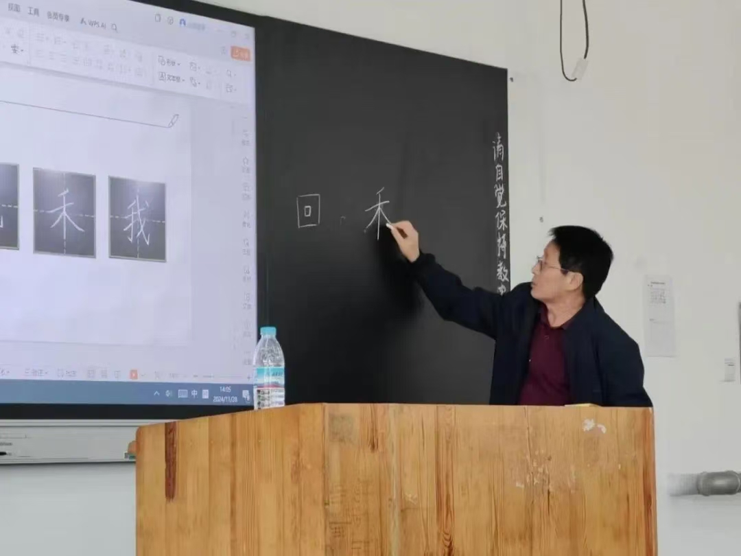 活动中,王光华老师为社团成员呈现出一场美学与智慧的书法盛宴。接着在长达一个半小时的精彩授课中,王老师凭借深厚的书法造诣与卓越的教学水平,生动讲述了钢笔字与粉笔字的精髓所在,重点解析了各类基本部首的书写规范与艺术美感。通过对诸如“口”、“同”、“回”等常用字的详细演示,巧妙引导同学们领略汉字构造之美,感受每一笔画间所蕴含的文化韵味。王老师亲自示范,手把手指导,确保每位学生都能够掌握正确的书写技法,体验书法创作的无穷乐趣。