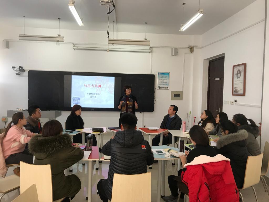 进一步提升辅导员团队心理素质,提高辅导员心理自我调适能力,帮助辅导员获得职业幸福感,11月28日下午,学院特别邀请我校教授、原应用心理学研究所所长、心理学教研室主任苗军芙主讲了《与压力共舞》专题讲座,学院党总支副书记马海涛主持报告,学院全体辅导员聆听本次讲座。