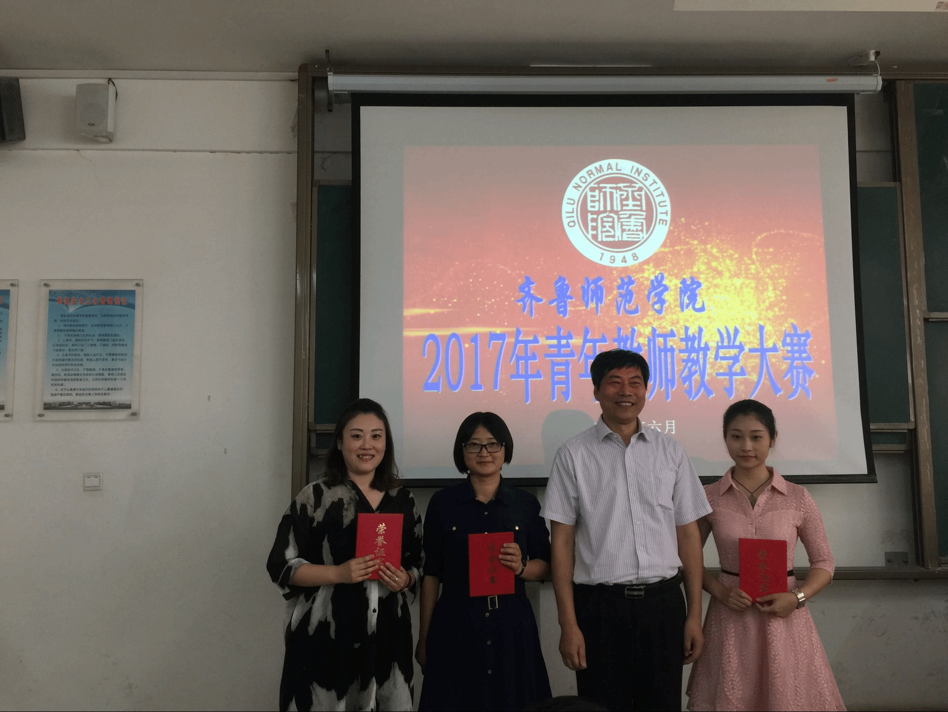 王凤龙老师是我院青年教师在学校举办的青年教师教学大奖赛中连续获得第三个文科组一等奖。第一、二个一等奖的获得者分别是我院青年教师薛绍聪博士和卢泓予老师,她们分别于2016年、2017年代表学校参加了“山东省高校青年教师教学比赛”,薛绍聪博士获得山东省第一名,并代表我省参加了“全国高校青年教师教学比赛”,获得了三等奖,荣获“富民兴鲁”劳动奖章。卢泓予老师也在今年代表我校参加山东省高校青年教师教学比赛。
